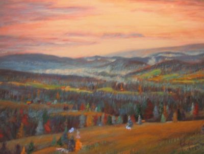 The woodlands still surround her at home today in rural Virginia. Living near the Chesapeake Bay; the coastal marshes, meadows and mountains also inspire her paintings. She travels extensively with her husband Jim painting en plein air on protected lands across the country. Together they donate a portion of the proceeds from the sale of her artwork to the ongoing work of land conservation. The Williamsburg Land Conservancy has honored her for her contribution with their President’s Award of Excellence.