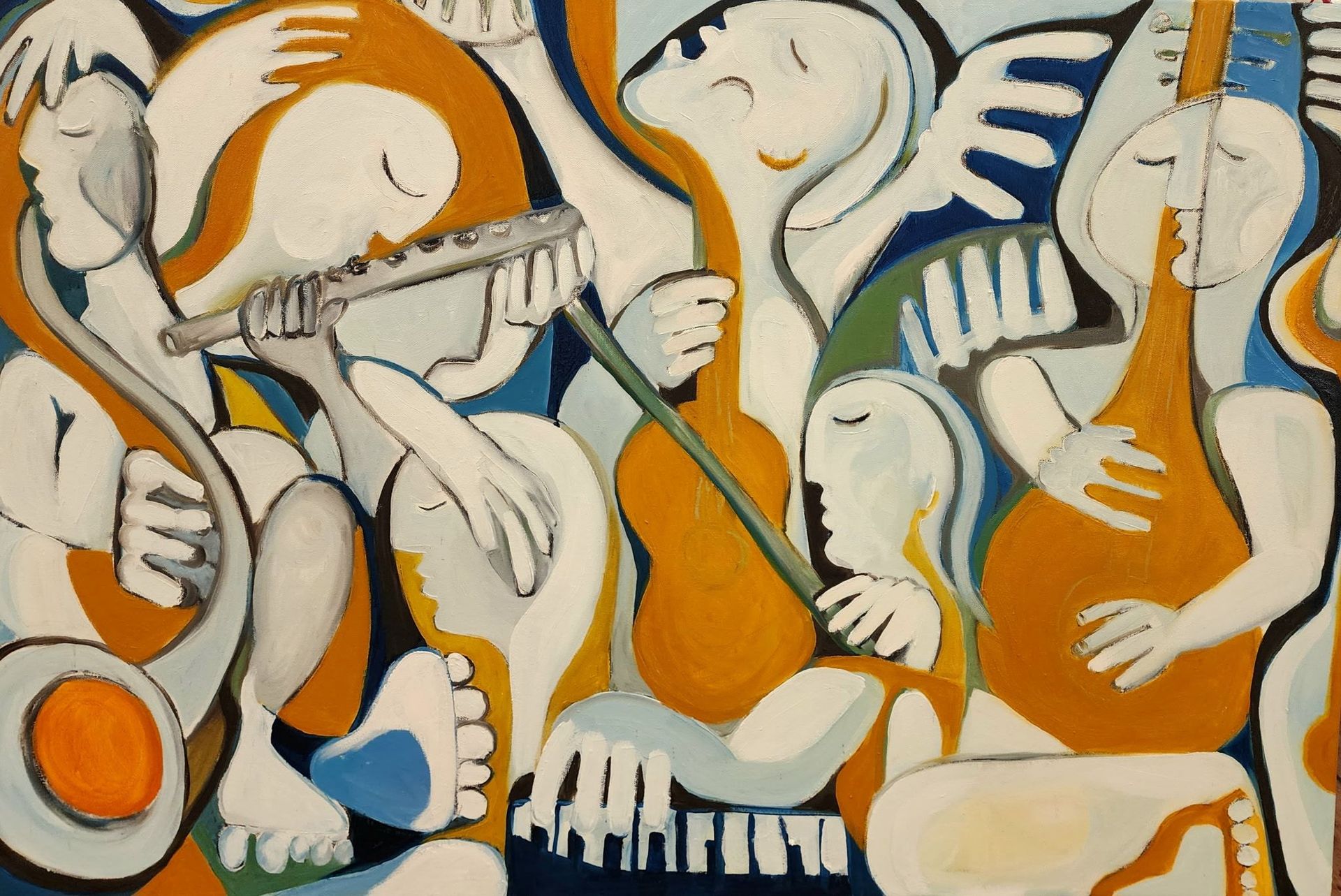 Sorin Bica paints abstract people in high contrast, vibrant colors and texture. "I'm fascinated by people and the complexity of life, by the happiness and sorrow that we experience, about the love and hate we are capable of in a relationship to other human beings" says Bica. He is still trying to develop a balance in his paintings between these love-hate relationships. His work has been described as emotional, passionate, intense and colorful.