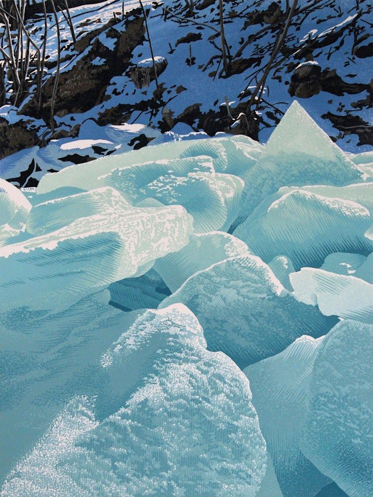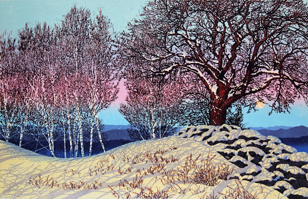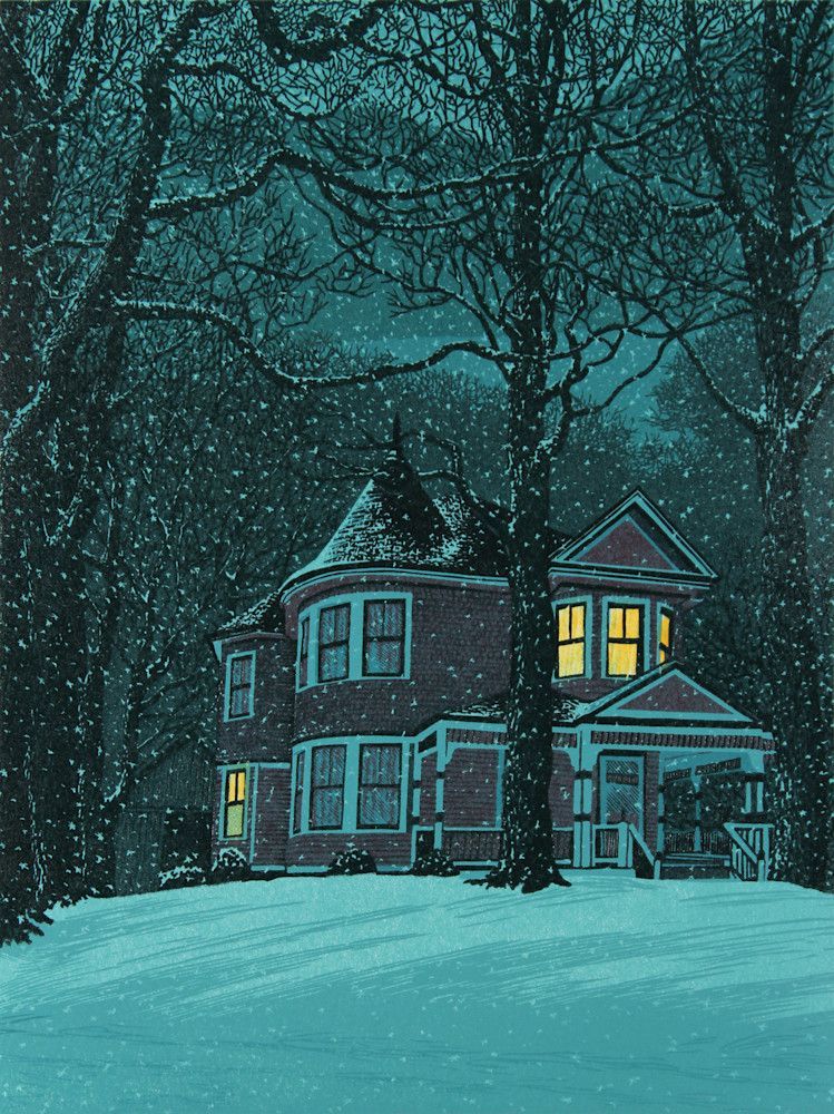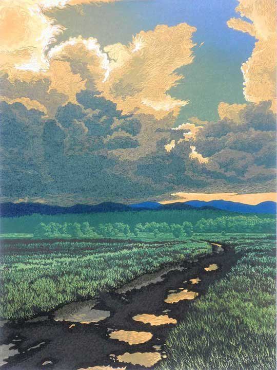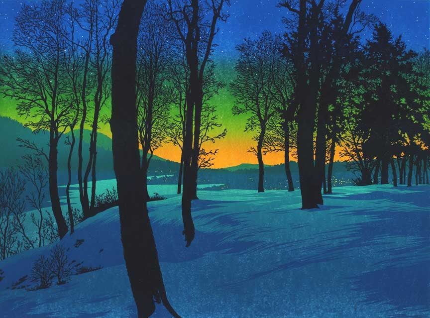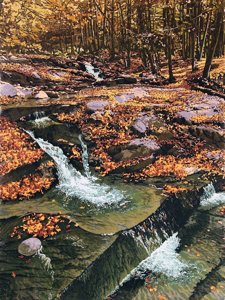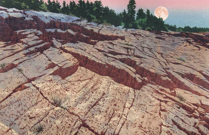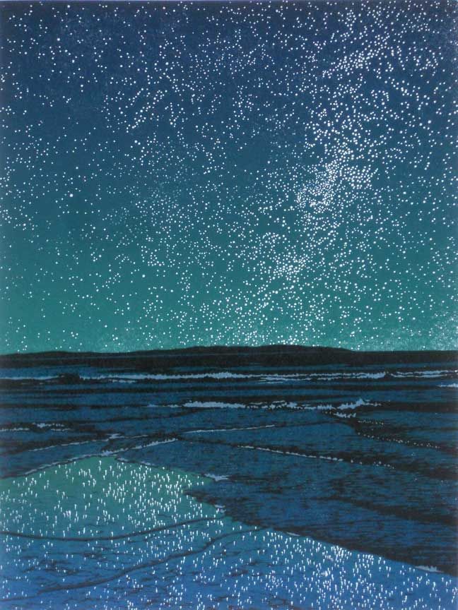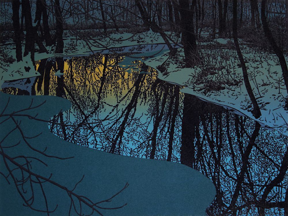 For William Hays, the idea of positive and negative is everything but black and white. Hays takes the simplicity of linocut printing to new levels in his beautiful and complex prints. Intricate techniques of carving and printing are brilliantly reflected in the rich colors and resonant atmosphere of each print.